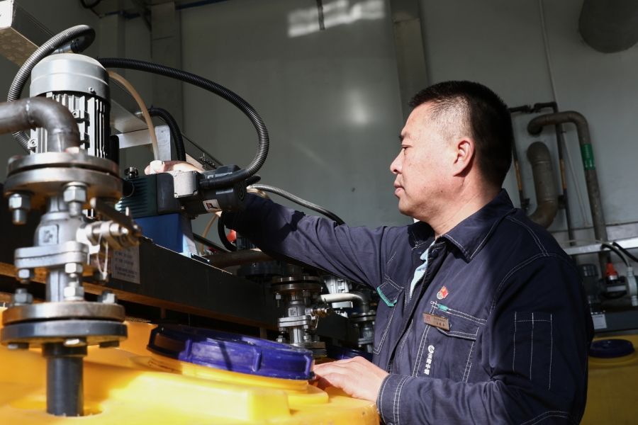工作人員在檢查中水處理加藥泵(11月18日攝)。孫雪飛 攝