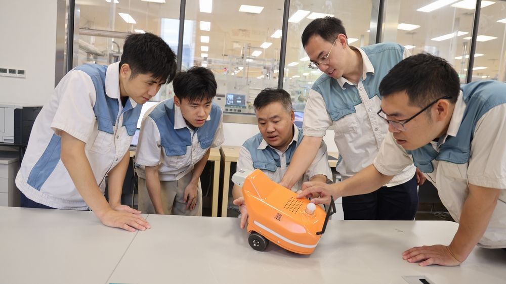 項目組成員在研究調(diào)試磁吸安全巡檢機器人。岑榮忠 攝