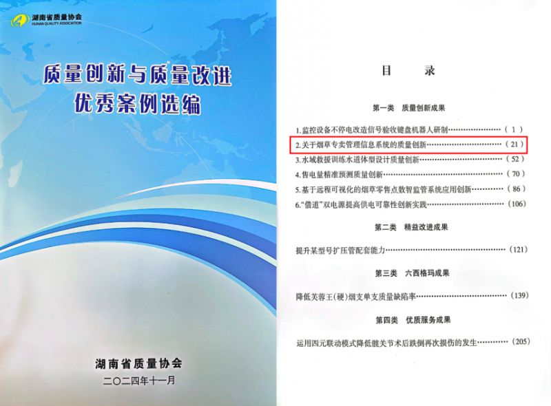——創(chuàng)新成果花開一線。《市(縣)級煙草商業(yè)企業(yè)現(xiàn)代化煙草市場治理體系創(chuàng)建與應(yīng)用》課題,全面創(chuàng)建實(shí)施“六大體系”,研發(fā)應(yīng)用“四大工具箱”,有效提升市場綜合治理水平,榮獲湖南省企業(yè)管理現(xiàn)代化成果二等獎?!蛾P(guān)于煙草專賣管理信息系統(tǒng)的質(zhì)量創(chuàng)新》課題,通過輕應(yīng)用開發(fā)集成“智慧專賣”工具,有效縮短專賣文書、報(bào)表制作耗時,榮獲湖南省第五屆質(zhì)量創(chuàng)新與質(zhì)量改進(jìn)成果一等獎,并入選優(yōu)秀案例選編。這些從基層土壤中生長出的成果,實(shí)實(shí)在在減輕了一線工作負(fù)擔(dān),提升了基層工作效率。