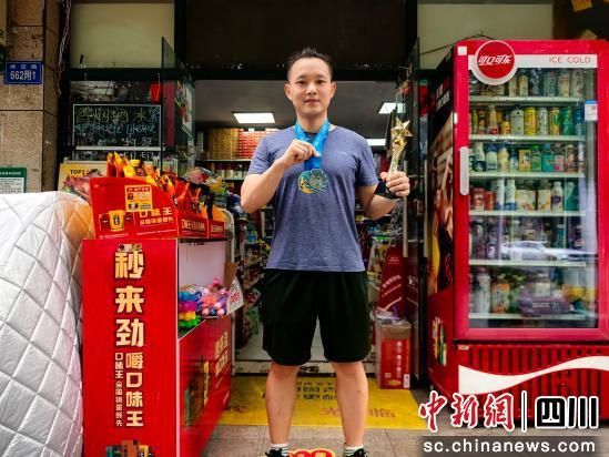 伍誠與他獲得的跑步榮譽。遂寧市煙草專賣局供圖