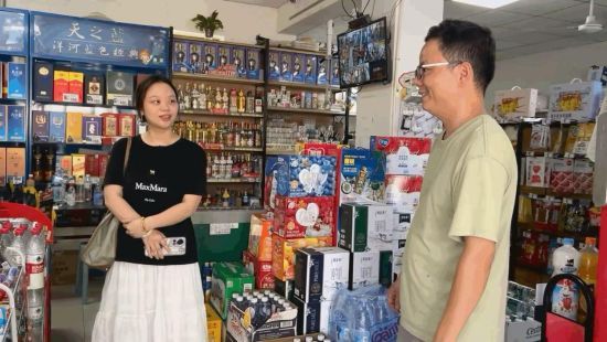 圖為南昌縣煙草客戶經(jīng)理上門拜訪鄒超超并提議組建“星火小澄”即時零售聯(lián)盟。熊炎喆 攝