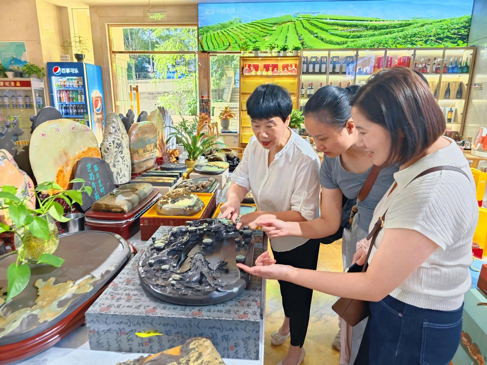 一件鈦產(chǎn)品,輕訴“釩鈦之都”的工業(yè)脊梁;一方苴卻硯,銘刻攀西大裂谷的地質(zhì)傳奇;一包特色煙,融入陽光花城的獨(dú)特韻味——在四川攀枝花市東區(qū)金海名都大酒店一樓大廳,走進(jìn)攀枝花旅游商品展銷中心,仿佛步入了一個(gè)微縮的文化博覽館,城市的獨(dú)特印記在這家文旅特色終端里展示得淋漓盡致。