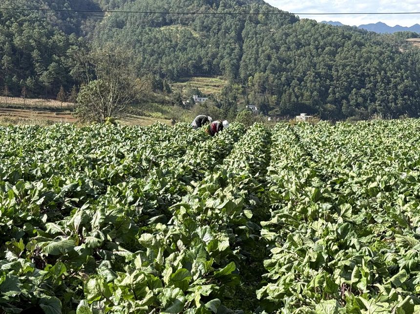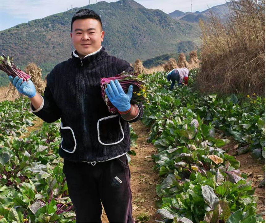 為保障融合產(chǎn)業(yè)全生命周期高質(zhì)量發(fā)展,赫章縣構(gòu)建了煙農(nóng)、合作社、農(nóng)貿(mào)公司三方聯(lián)動的合作體系。煙農(nóng)負責按技術(shù)規(guī)范開展煙葉與紅菜苔接茬種植的精細化管理,筑牢產(chǎn)品質(zhì)量源頭防線;合作社發(fā)揮統(tǒng)籌協(xié)調(diào)作用,實行“統(tǒng)一規(guī)劃、統(tǒng)一管理、統(tǒng)一采收、統(tǒng)一服務(wù)”的標準化生產(chǎn)模式,有效降低種植成本;農(nóng)貿(mào)公司則聚焦產(chǎn)業(yè)鏈后端,提供優(yōu)質(zhì)種子、制定生產(chǎn)標準、拓展銷售渠道、打造特色品牌,以訂單農(nóng)業(yè)模式為農(nóng)產(chǎn)品銷售保駕護航,實現(xiàn)優(yōu)質(zhì)優(yōu)價。