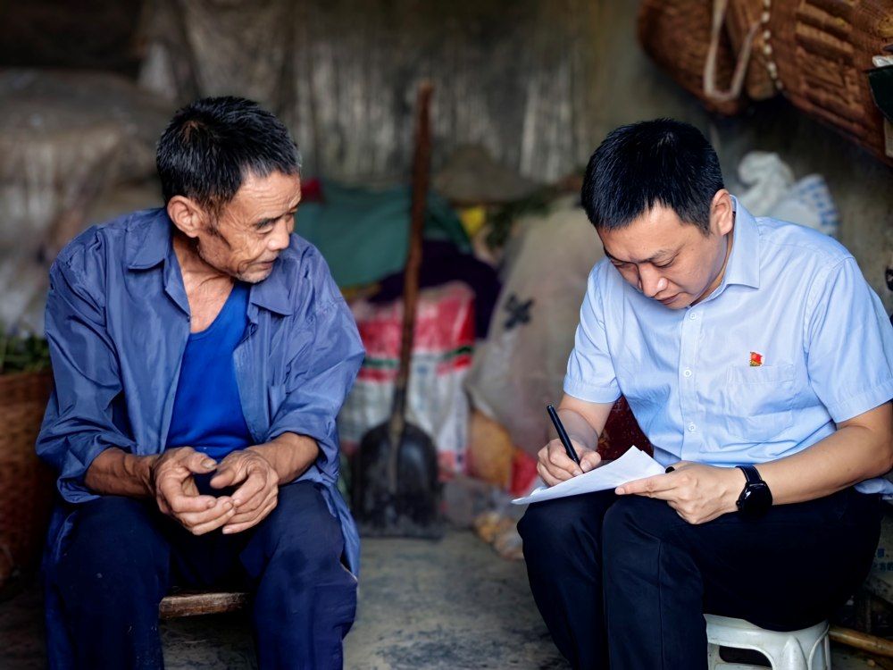 劉晉成(右)入戶摸底村民生活情況。內(nèi)江市煙草專賣局供圖