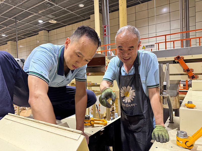 剛給設(shè)備做完開機前保養(yǎng),陶忠成沾著機油的手還沒來得及擦,徒弟小丁就遞來一塊干凈的大布。前幾年,小丁退伍進廠跟著陶忠成學技術(shù),同樣的軍旅經(jīng)歷,讓師徒倆之間有種不用多說的默契。