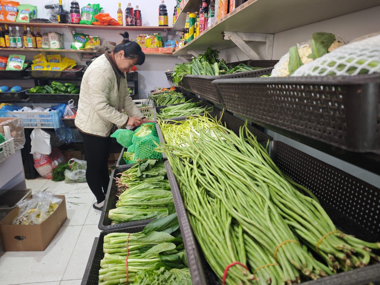 天亮后,梁寶云和公婆接力忙碌。公婆負(fù)責(zé)蔬菜分揀、清洗與初加工,摘掉發(fā)黃菜葉、清理泥土,讓每樣食材都保持最佳賣相;梁寶云則專注接待顧客、打理賬務(wù),兼顧補(bǔ)貨與衛(wèi)生清掃。節(jié)假日客流量大時(shí),一家人常常忙得連飯都顧不上吃,輪流扒幾口飯就又投入工作。