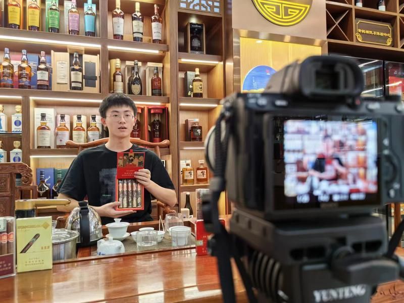 近日,廣東廣州南沙區(qū)煙草專賣局(分公司)協(xié)助零售客戶制作介紹雪茄品牌知識和培育技巧的短視頻,分享給轄區(qū)其他雪茄終端零售客戶,帶動轄區(qū)客戶提升雪茄品牌培育水平。圖為零售客戶在錄制介紹雪茄知識的視頻。鄭遙攝