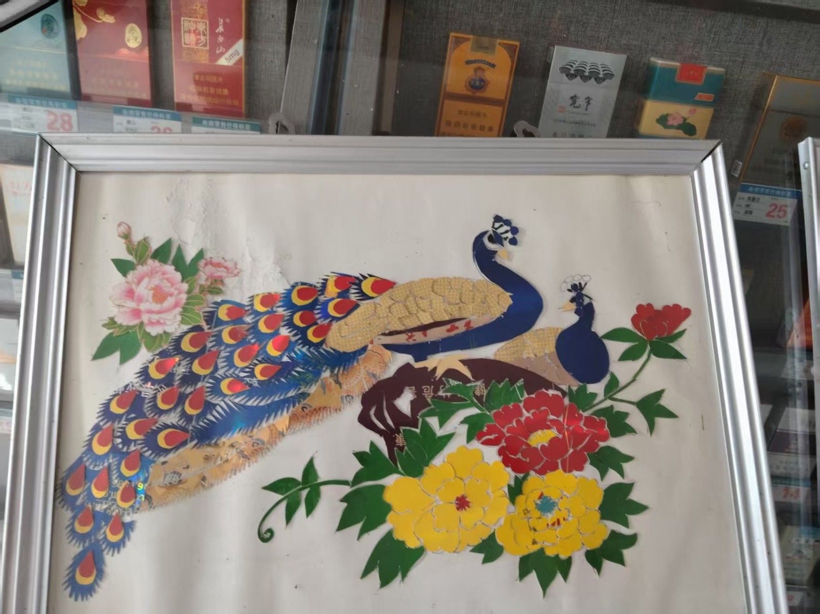 “一個《八仙過?!?#xff0c;得用20多個條盒皮?!眲⒅驹菩χ故舅摹按尕洝?#xff0c;紅的“紅雙喜”、金的“泰山”、藍(lán)的“南京”,在她手中按色調(diào)、紋理分類。剪刻時,她保留煙盒原有的燙金、壓紋工藝,讓鐵拐李的葫蘆泛著“哈德門”的復(fù)古金,何仙姑的花籃綴著“玉溪”的水綠。2023年完成的《鳳穿牡丹》,僅牡丹花蕊就用了 7 種煙盒的邊角料,層層疊疊間,既有傳統(tǒng)剪紙的鏤空之美,又有煙草包裝的現(xiàn)代質(zhì)感,顧客見了無不稱奇:“原來煙盒能這么美!”