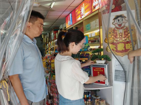 圖為西湖區(qū)煙草局在零售戶(hù)監(jiān)督員開(kāi)啟“服務(wù)質(zhì)量監(jiān)督意見(jiàn)箱”收集意見(jiàn)和建議